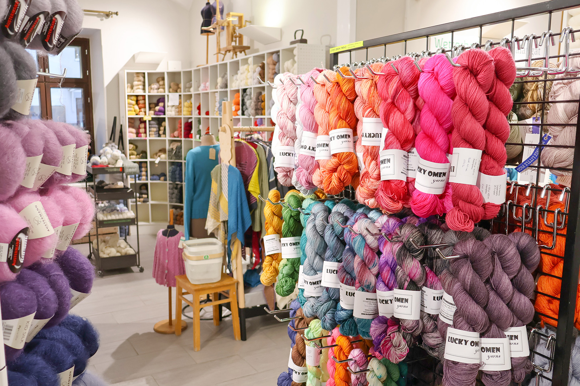 Lankamyymälä tunnetaan upeasta ja laajasta valikoimasta. Lankoja löytyy monilta eri valmistajilta, eri käyttötarkoituksiin ja eri hintaluokissa. Wetterhoffin omat langat ovat sekä kotimaassa valmistettua suomalaista villaa, että omilla resepteillä Norjassa ja Italiassa teetettyjä lankoja.
