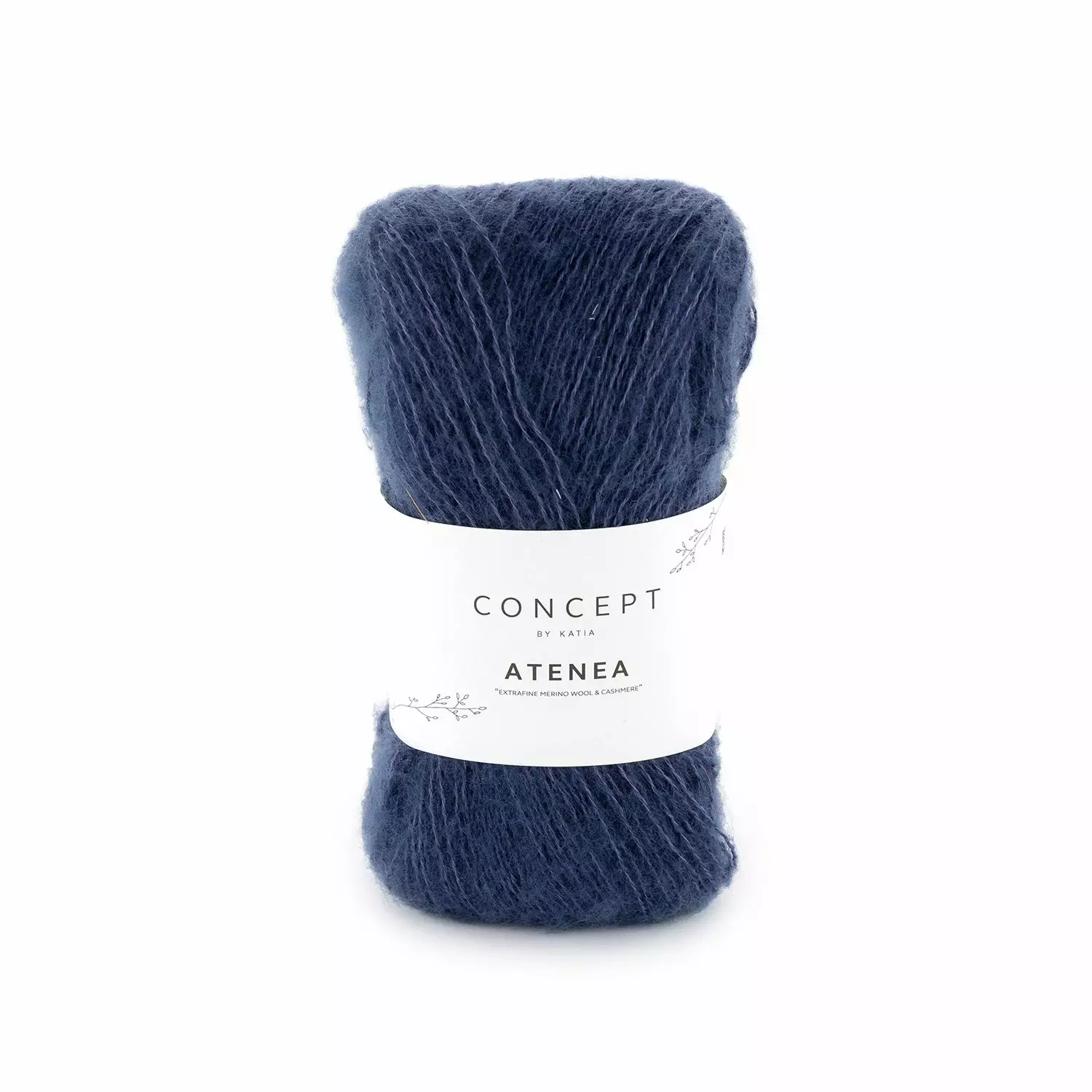 Concept by Katian Atenea on laadukkaista materiaaleista koostuva ihanan pehmeä, kevyt ja ilmava lanka. Atenea sisältää neitsytvillaa, egyptiläistä laadukasta mako-puuvillaa ja pehmeää kashmiria. Atenea on ihanteellinen kevyiden ja muodikkaiden vaatteiden neulomiseen, joissa on pehmeä, harjattu tuntuma. Sopii erinomaisesti myös huivilangaksi. Ateneassa on kauniin pehmeät värisävyt. Pitkähihaisen 42-kokoisen neulepuseron menekkiarvio on 7 kerää.