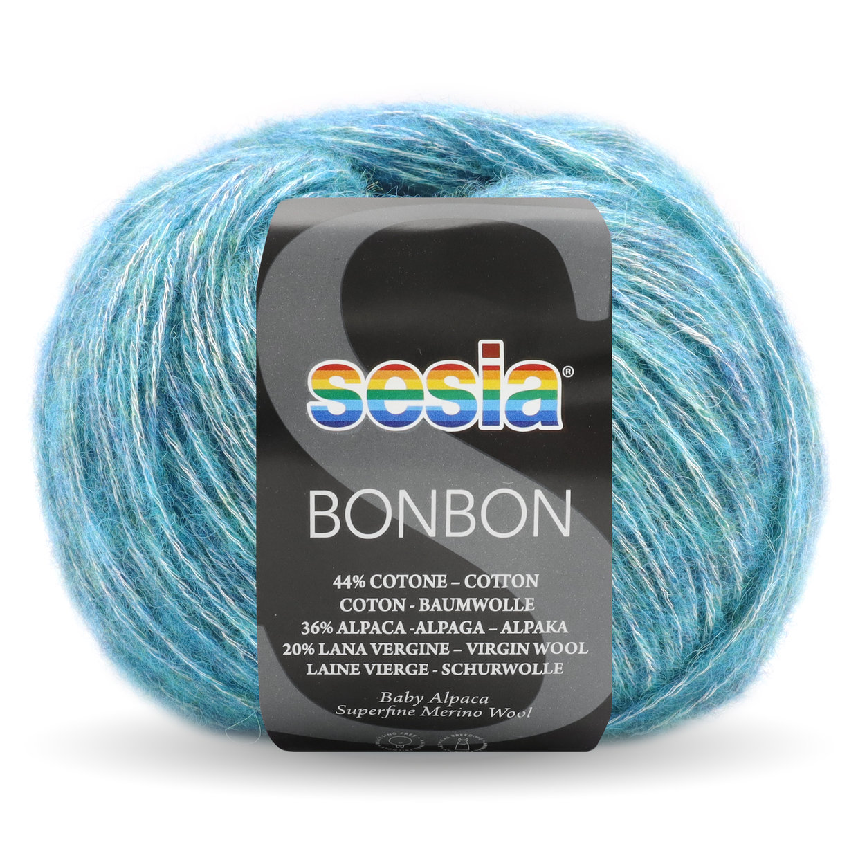 Sesia Bonbon lanka on kevyttä ja ihanan pehmeää lankaa. Bonbon-lanka koostuu puuvillaputkesta, jonka sisään on puhallettu pehmeää ja lämmintä vauva-alpakkaa ja merinovillaa. Bonbon-lanka soveltuu upeasti etenkin neulepaitoihin, huiveihin tai muihin asusteisiin. Langan koostumus on pehmeää eikä kutita herkästi. Bonbon-langan värikartassa yhdistyvät sekä maanläheiset rauhalliset sävyt, että voimakkaammat väriherkut.