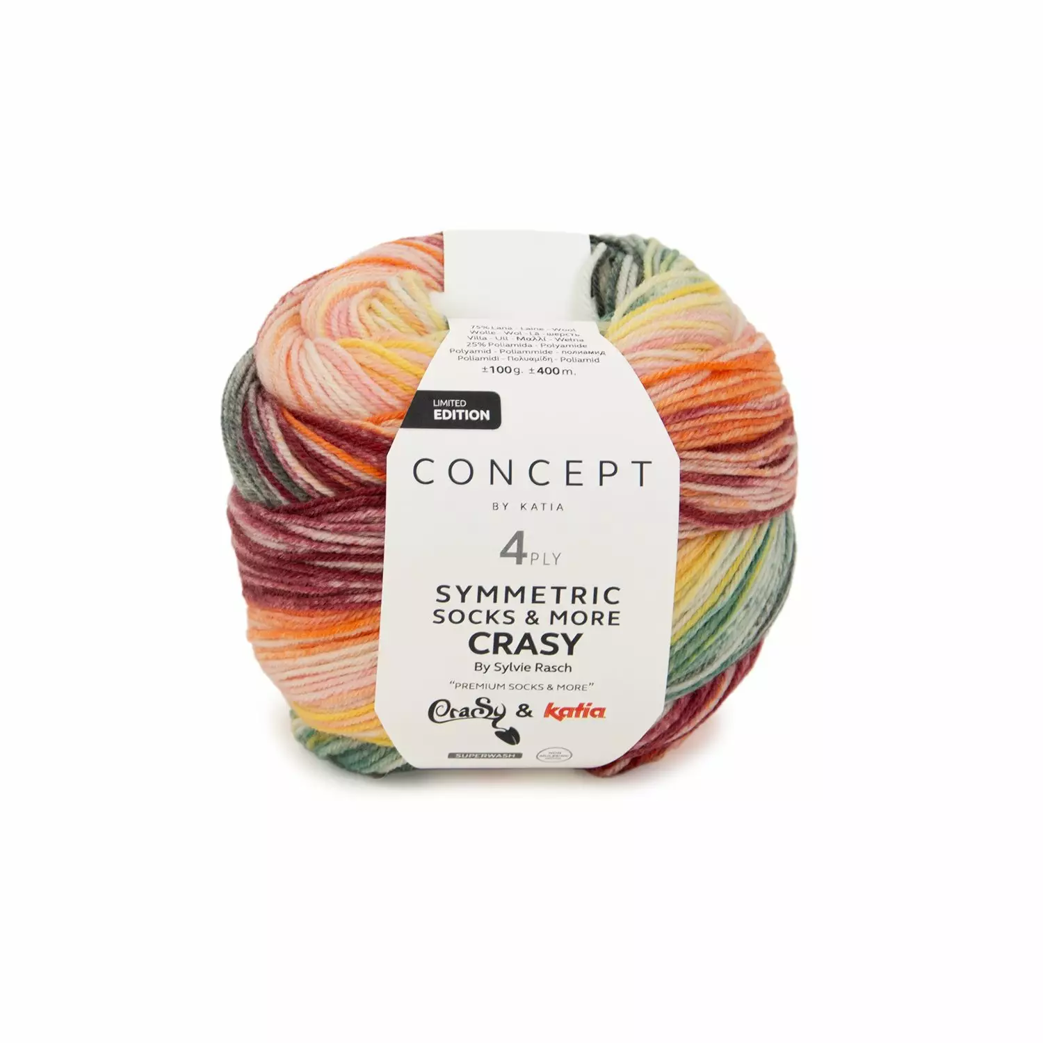 Concept by Katia - Crasy sukkalanka on laadukas ja pehmeä väripilleri! Crasy-sukkalangat ovat superwash-konepestäviä ja yhdestä kerästä neulot symmetrisen sukkaparin ja parista kerästä syntyy upea huivi.