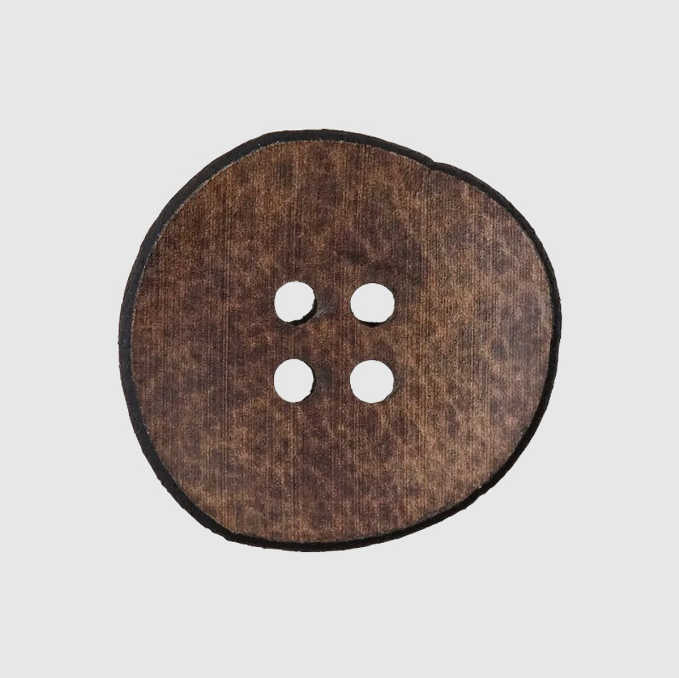Prym Kierrätetty nahka nappi on valmistettu 100 % oikeasta nahasta. Napissa on neljä reikää kiinnittämistä varten. Nahka antaa napille tyylikkään ulkonäön. Näillä napeilla viimeistelet itsetekemäsi tuotteet laadukkasti.