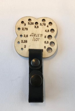 Arjen Ilot Puikkoapu pyöröpuikoille on kätevä apu pitämään pyöröpuikot järjestyksessä. Puikkoavussa on myös puikkomitta, jolla voit helposti mitata puikkojesi paksuuden. Puikkomitta on tehty puusta ja lenkki pyöröpuikkoja varten on valmistettu nahasta. Kiinnitysmekanismina toimii neppari.