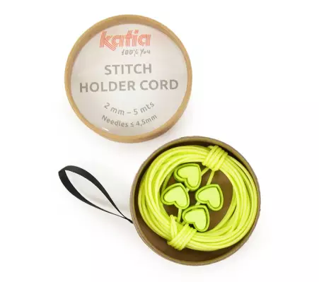 Pidä neuletyösi aina turvassa tällä Katian joustavalla 2 mm:n vihreällä silmukkapidikelangalla. Silmukkakaapelille voit jättää odottamaan esim. hihasilmukat tai kun tarvitset jatkopituutta työn sovittamiseen. Silmukkakaapelin koko pituus on 5 metriä ja voit leikata sen halutun pituiseksi: pitääksesi silmukat paikoillaan tai pidentääksesi pyöröpuikkojen narua sovitusta varten. Mukana on neljä käytännöllistä sydämenmuotoista pysäytintä, jotka kiinnittävät päät varmasti ja estävät silmukoiden lipsumisen. Yhteensopiva jopa 4,5 mm:n puikoilla neulottujen projektien kanssa. Tee jokaisesta projektista mukavampi ja sujuvampi ja nauti neulomisen intohimostasi täysillä.