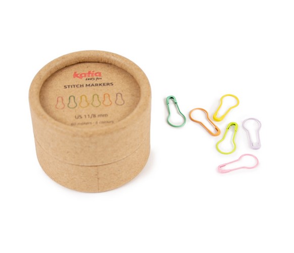 Katia Silmukkamerkit ovat metallisia, kevyitä ja helposti työssä mukana liikkuvia. Niissä on turvallinen avaamis- ja sulkemismekanismi. Merkki mahtuu jopa koon 8 puikolle. Pakkauksessa on 60 silmukkamerkkiä kuudessa eri värissä.