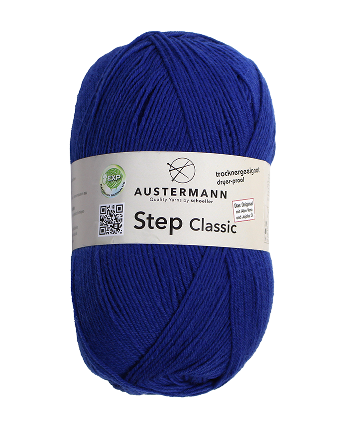 Austermann Step Classic on laadukas yksivärinen ohut sukkalanka. Lanka on käsitelty Aloe Veralla ja Jojobaöljyllä minkä ansiosta valmiit tuotteet ovat miellyttävän tuntuisia käyttää ja näin ollen soveltuvat hyvin myös herkkäihoisille. Yksi kerä riittää sukkapariin jopa 46 koossa. Lanka soveltuu loistavasti myös muihin asusteisiin ja neuletakkeihin.