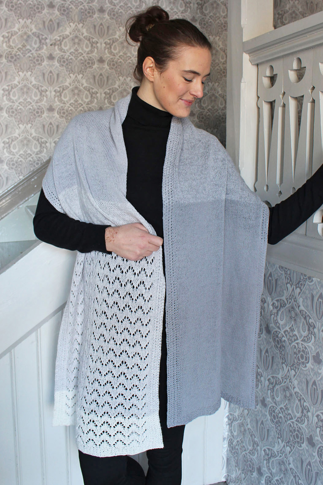 Kaunis arkeen ja juhlaan sopiva huivi istuu hartioille tai kaulaan. Huivi neulotaan kaksinkertaisella ohuella kampavillalangalla. Sen kaunis meleerattu raidoitus syntyy kun kolmea eri lankaväriä vuorotellaan. Hillityn raidoituksen lisäksi huivin toisessa päässä kulkee elegantti pitsikuvio. Lankana lämmin, laadukas ja riittoisa Wetterhoffin Veera-kampavillalanka. Ison huivin tekemiseen tarvitset vain kolme vyyhtiä. Mallihuivissa on yhdistetty kolme vaaleasta tummaan menevää sävyä.
