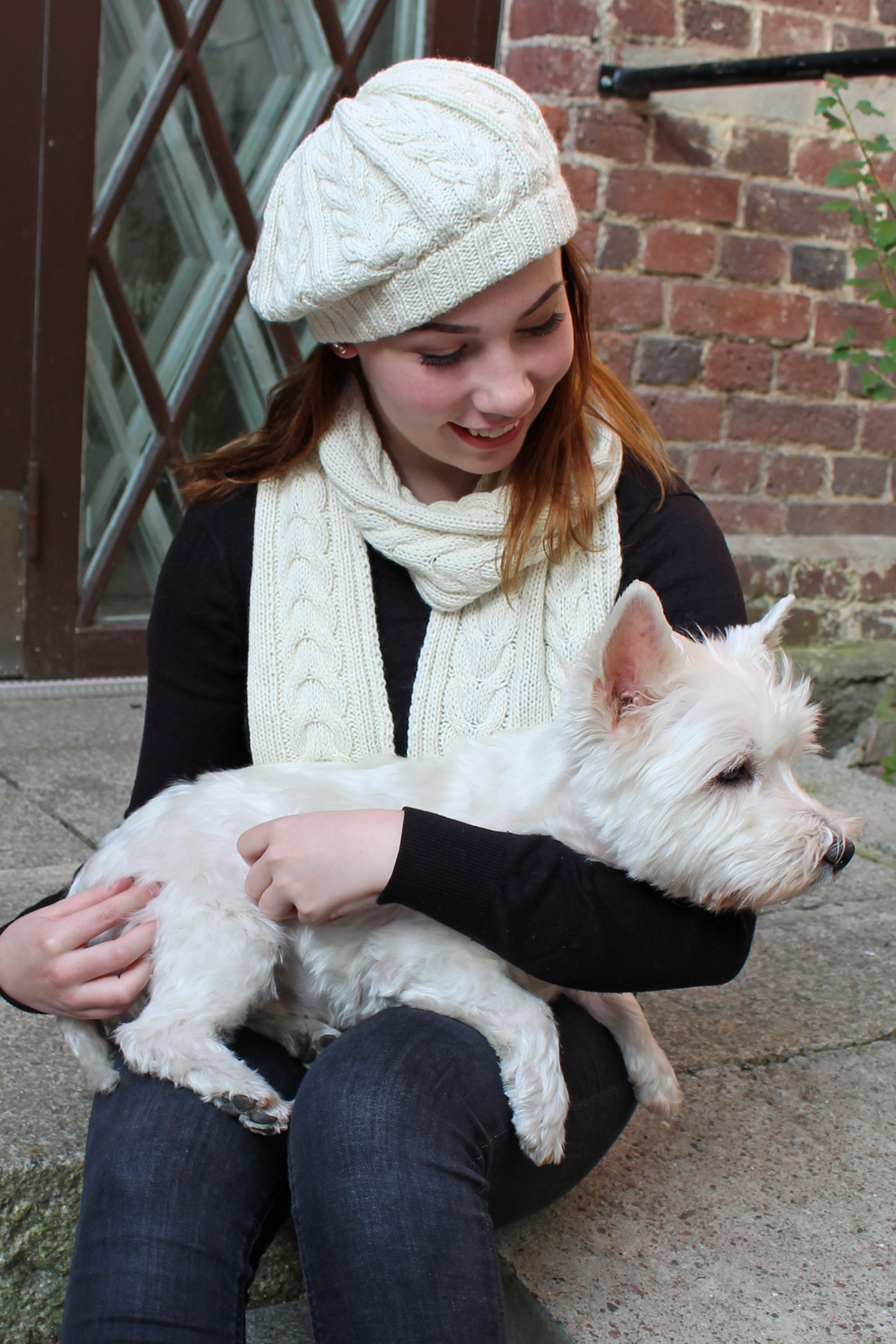Neuleohje palmikkomyssyyn ja huiviin. Lankana on käytetty Wetterhoffin pehmeää Sivilla-silkkivillalankaa. Myssy ja huivi neulotaan kaksinkertaisella langalla.