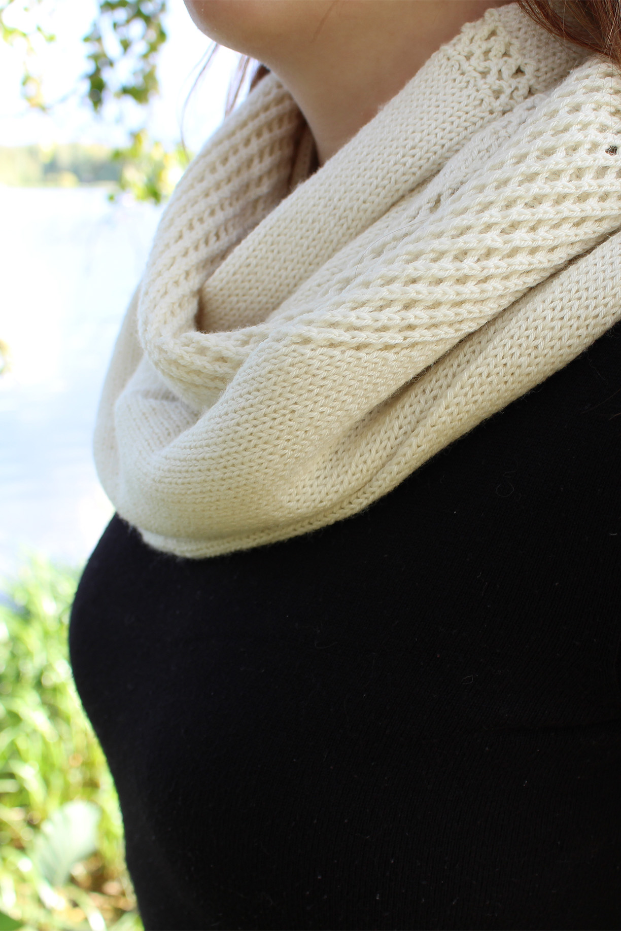 Neuleohje pitsituubiin. Huivi neulotaan putkena pyöröpuikoilla ja virkataan tuubiksi. Valmiin huivin koko on n. 20 x 135 cm. Lankana käytetään pehmeää silkkivillalankaa.