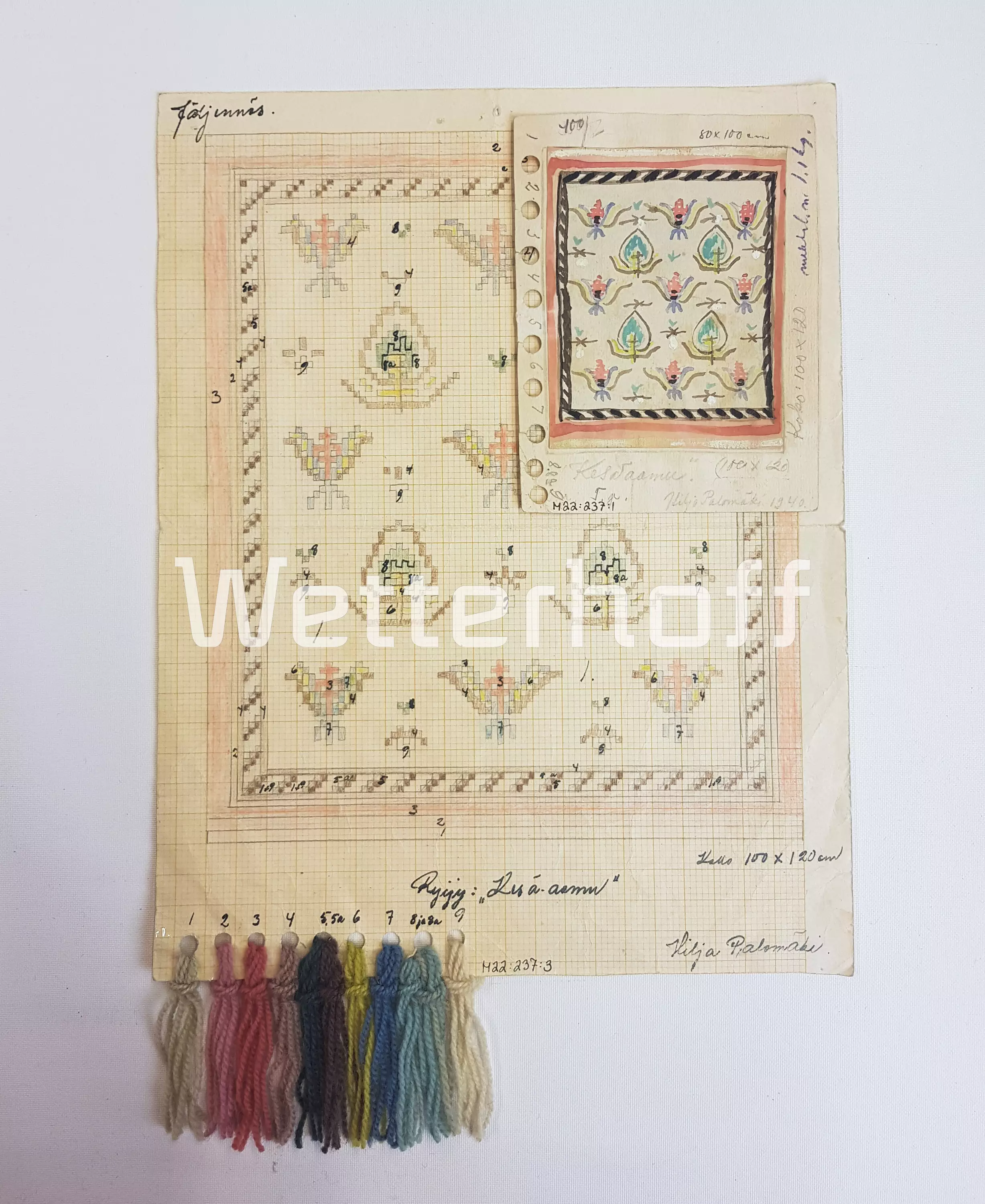 Myymme käyttöoikeuden vanhan ryijymallin valmistamiseen, paketti sisältää: