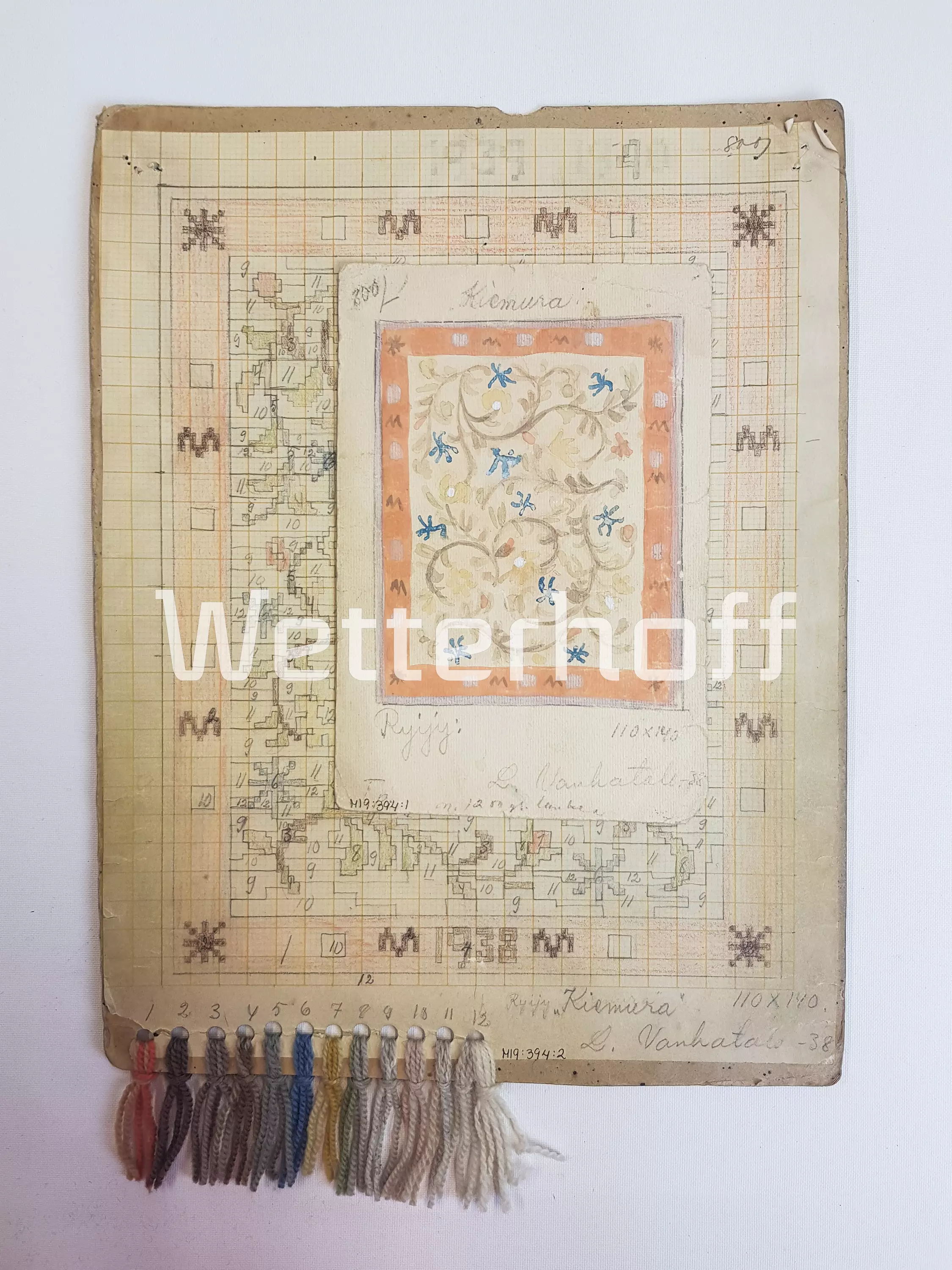 Myymme käyttöoikeuden vanhan ryijymallin valmistamiseen, paketti sisältää: