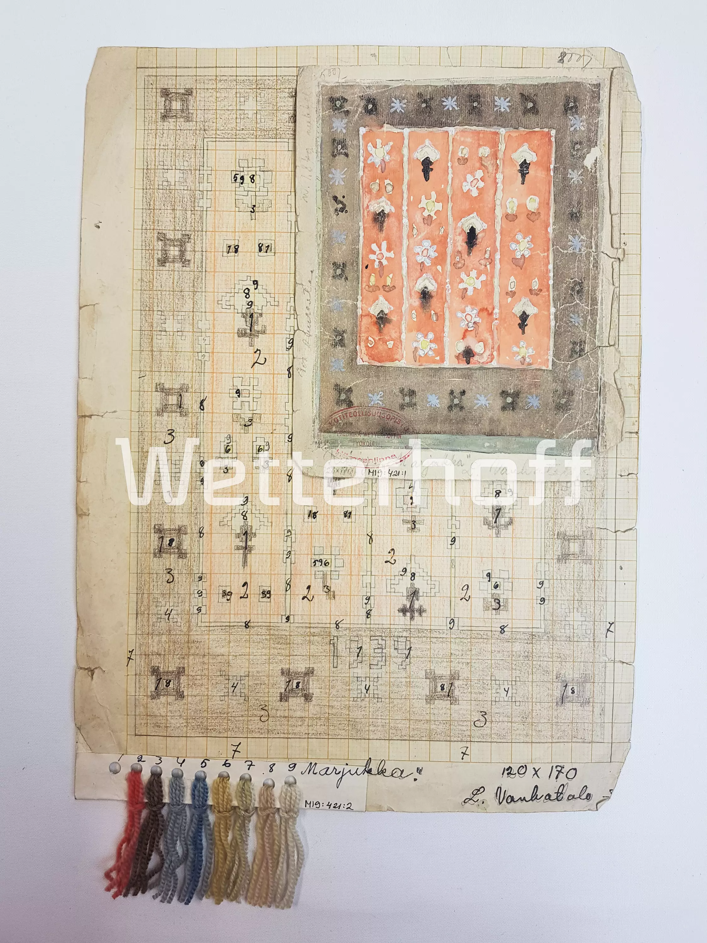 Myymme käyttöoikeuden vanhan ryijymallin valmistamiseen, paketti sisältää: