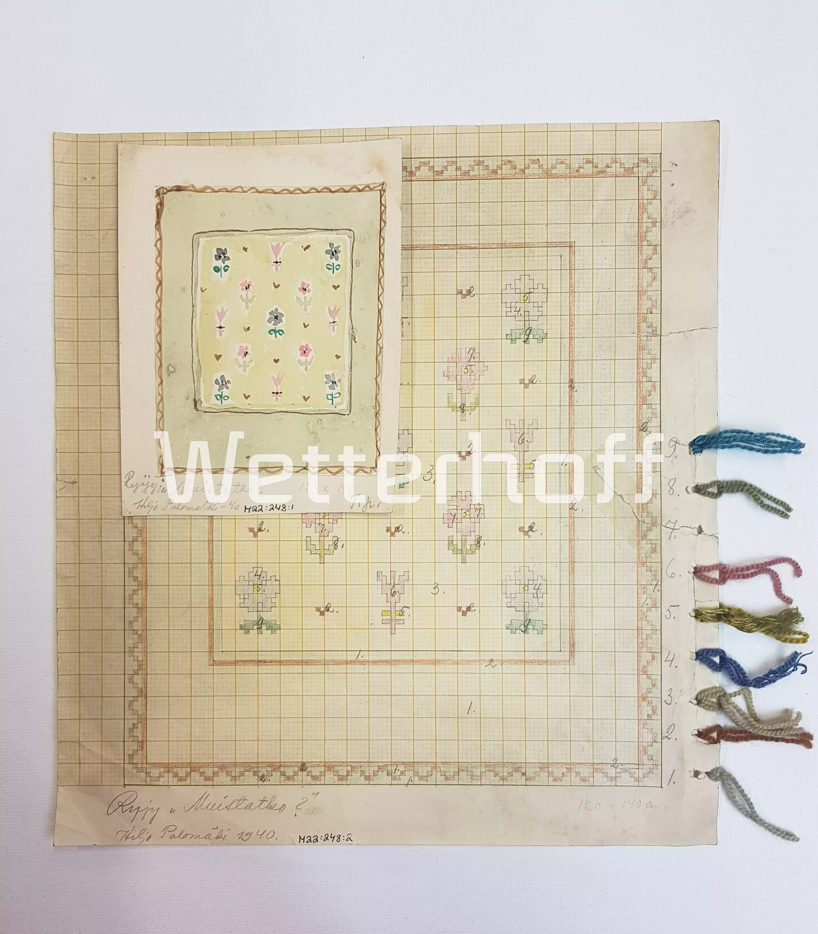 Myymme käyttöoikeuden vanhan ryijymallin valmistamiseen, paketti sisältää: