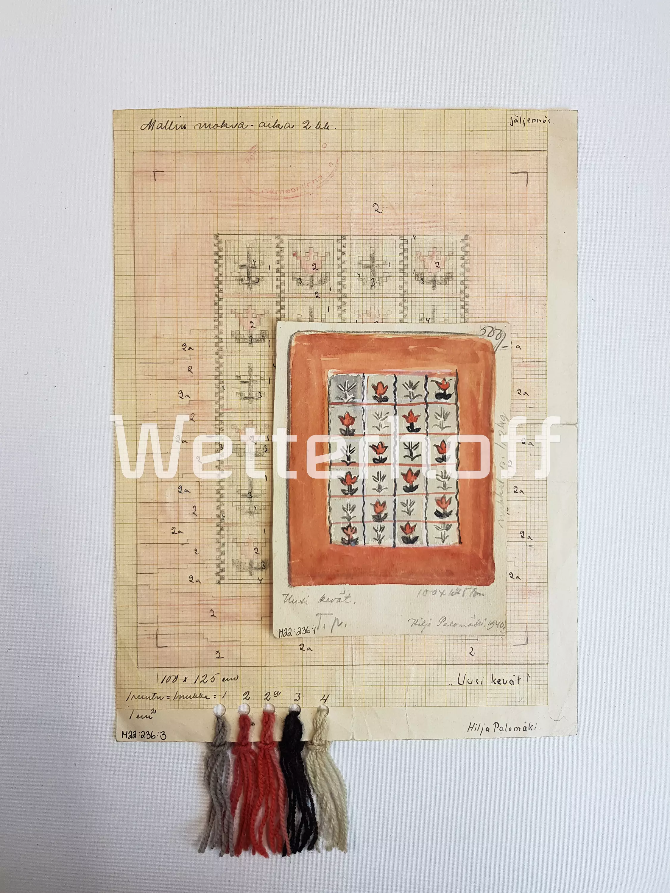 Myymme käyttöoikeuden vanhan ryijymallin valmistamiseen, paketti sisältää: